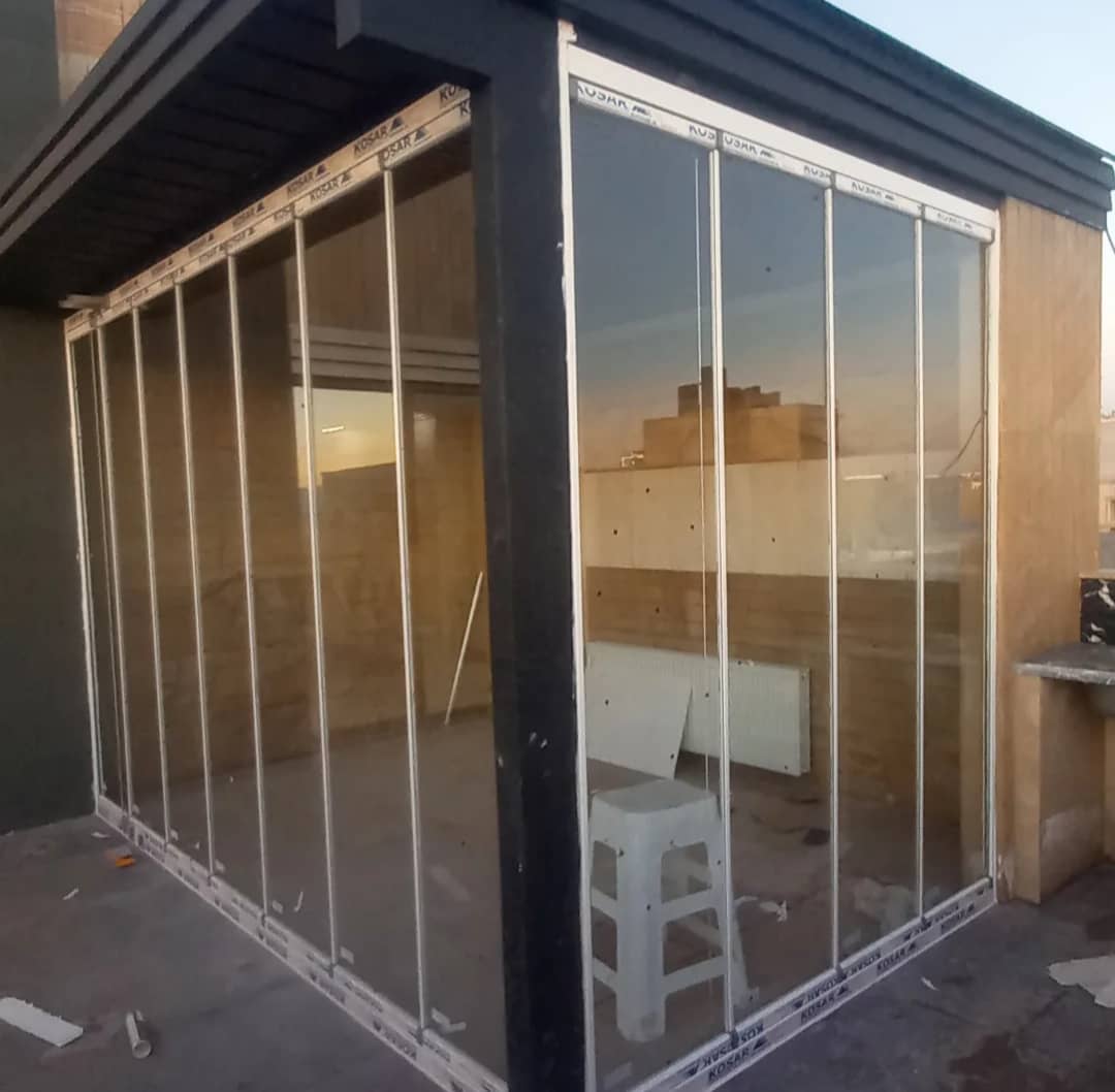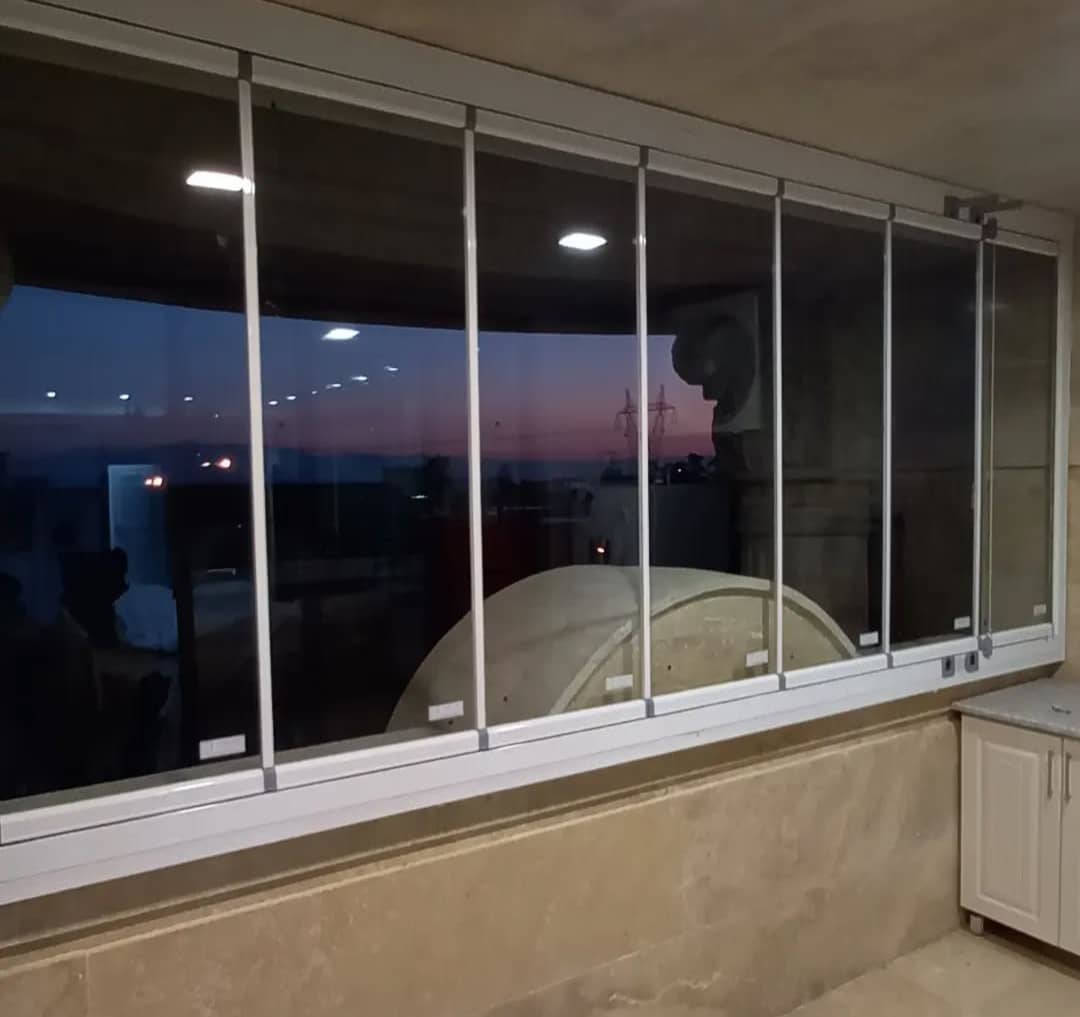 شیشه بالکنی تاشو اسلایدینگ — پنل ۸ میل سکوریت.